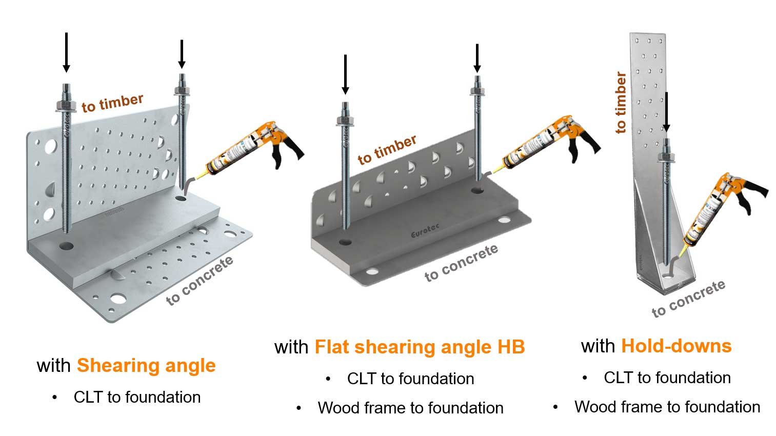 Mechanical anchors are widely used as quick and cost-effective means of connecting posts and beams in concrete substrates. However, their strength and scope of application are limited – especially with expansion anchors. These fasteners cause high compressive stresses in the subsurface. In addition, there must be enough material around the anchor to withstand this load. For this reason, they are usually not compatible with weaker, hollow substrates such as masonry and concrete of unknown quality or low strength.