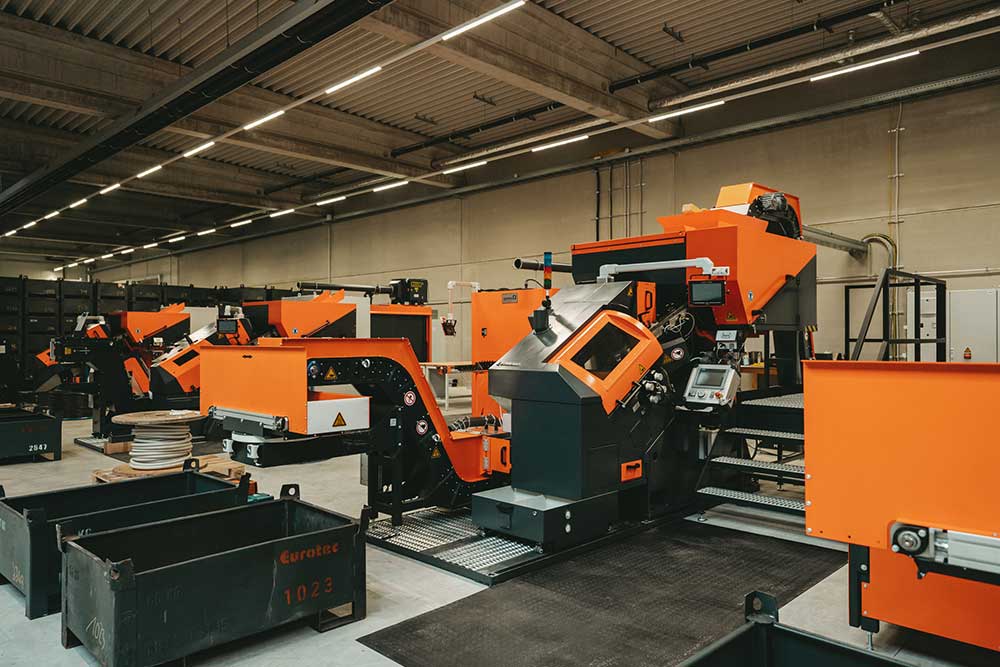 At Eurotec, we rely on innovative production processes and state-of-the-art technology to meet the highest customer demands - from incoming goods to quality control. Our production facility covers an area of approximately 4,000 square metres, including external storage areas. Of particular note is our all-in-one machine, which covers the entire production process for fully threaded screws, from cutting to finished product.