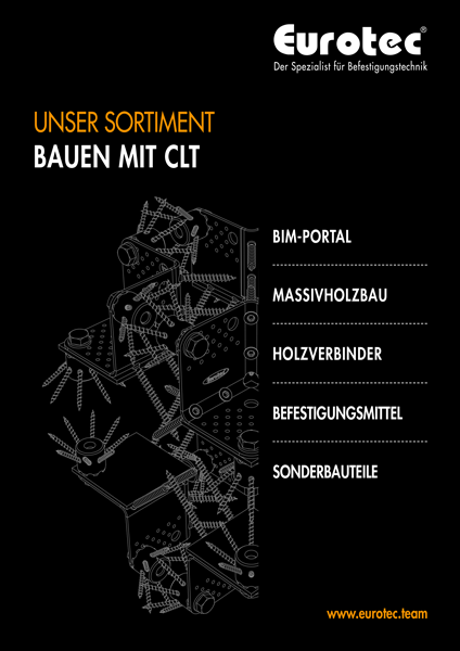 Der nachhaltige Holzbau wird in diesem Zusammenhang immer präsenter – fortschrittliche und innovative Verbindungen und Montagemethoden kommen für die heutigen Holzkonstruktionen zum Einsatz. Das Bauen mit Brettsperrholz (CLT = Cross-laminated timber) im modernen Ingenieurholzbau bietet durch bauphysikalische Eigenschaften die Umsetzung anspruchsvoller Projekte. Dies eröffnet dem Holzmodulbau neue Möglichkeiten. Der Baustoff Holz hat durch sein geringes Konstruktionsgewicht die besten Voraussetzungen, für die modulare Bauweise und die Aufstockung im Holzbau eingesetzt zu werden. Um innerhalb kürzester Zeit Großprojekte, welche durch enorme Spannweiten gekennzeichnet sind, umzusetzen, liefert Eurotec innovative CLT-Verbinder für Holzfertigelemente.