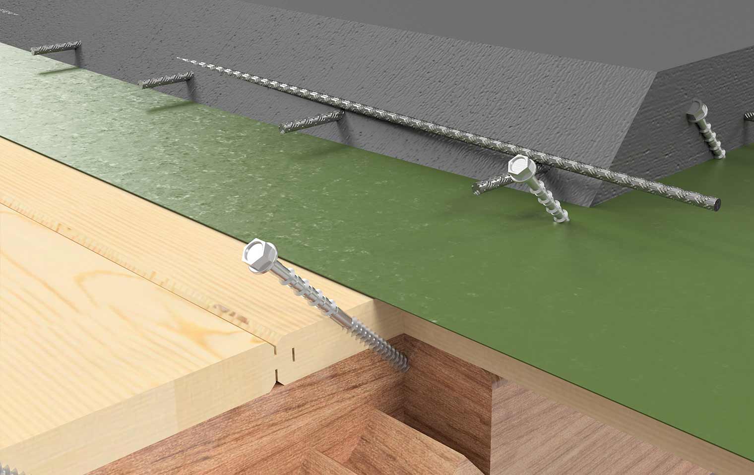Hinter dem Verbundaufbau steckt die Idee einzelne Werkstoffe, also Holz und Beton, schubfest miteinander zu verbinden, um auf diese Weise die Vorteile dieser Verbundwirkung bestmöglich ausnutzen zu können. Ferner dient sie vor allem der Anwendung im Bau von Zwischendecken. Für Holzdeckenkonstruktionen erweist sich diese Bauweise als besonders vielfältig, praxisgerecht und kosteneffizient, denn ein solcher Verbund erhöht die Tragfähigkeit von Konstruktionen deutlich. Ein optimales Tragelement wird durch das geringe Gewicht sowie der hohen Zugfestigkeit von Holz in Kombination mit der Betonmasse geschaffen.